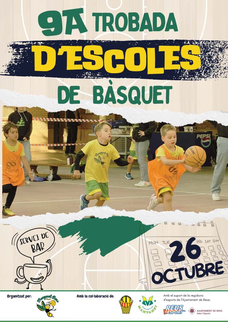 Aquest diumenge 26 d’octubre es celebra la 9a Trobada d’escoles de Bàsquet organitzada per la nostra secció al pati de l’escola. Vora 220 jugadors i jugadores (de 5 a 9 anys) realitzaran un total de 22 partits entre les 9 del matí i les 14 del migdia.
